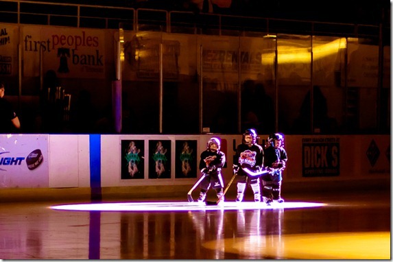He waits for Mr. Announcer man to announce the youth hockey players of the game.